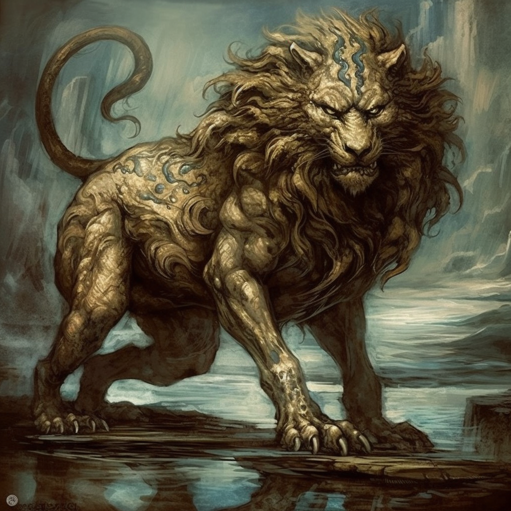 La Quimera era un monstruo híbrido con el cuerpo de un león, la cola de una serpiente y la cabeza de un macho cabrío. Esta criatura aterradora respiraba fuego y sembraba el terror en la región de Licia, en la actual Turquía. Finalmente, fue asesinada por el héroe griego Belerofonte, quien, montando al caballo alado Pegaso, logró vencer a la Quimera lanzándole una lanza en su boca de fuego.