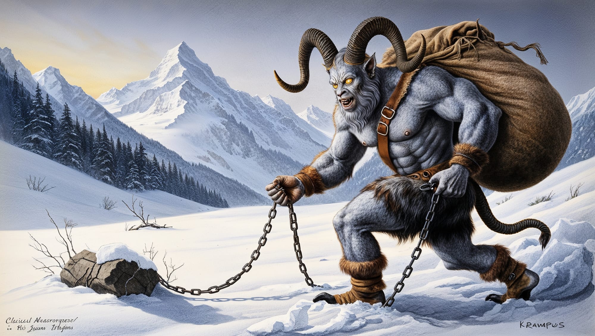 Quizás una de las figuras más conocidas del lado oscuro de la Navidad sea el Krampus, una criatura mitad hombre, mitad bestia, que aparece en las tradiciones de los Alpes. Mientras que San Nicolás premiaba a los niños buenos con regalos, el Krampus se encargaba de los desobedientes. Su apariencia era aterradora: cuernos curvados, una lengua larga y afilada, y cadenas que resonaban con cada paso.